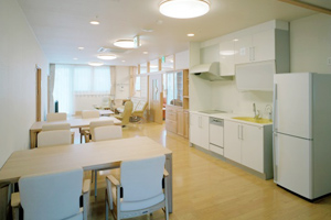 なお、各階に設けた共同生活室はゆったりとしたスペースを確保しており、ご利用者様同士はもちろん、訪問されるご家族の方もいっしょにくつろいでいただけるようになっています。